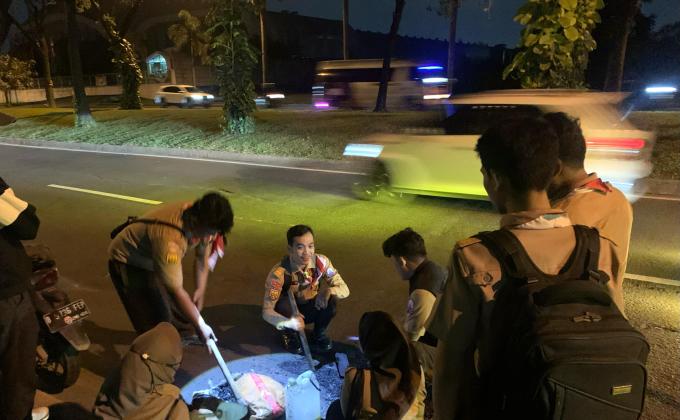 Perbaikan jalan berlubang oleh Pramuka UPB