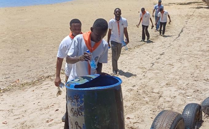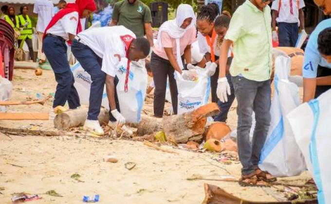 Crew members participate in Beach clean up at Nyali Public beach Mombasa. We collected all types of plastic around shore and manage to weigh 35kg of plastics