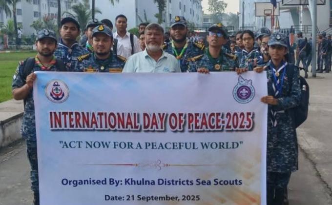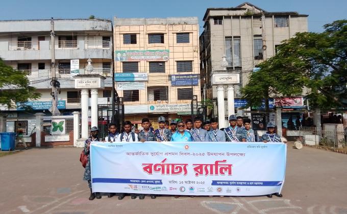 আন্তর্জাতিক দুর্যোগ প্রশাসন দিবস উপলক্ষে রেলি ও ফায়ার সার্ভিসের মহড়ায় অংশ নেই আমরা খুলনা জেলা নৌ স্কাউট