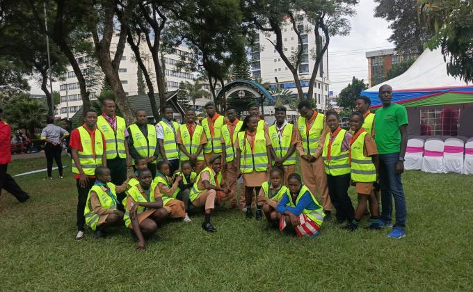 Scouts in Nakuru, Kenya take part in a Road Safety Awareness Campaign