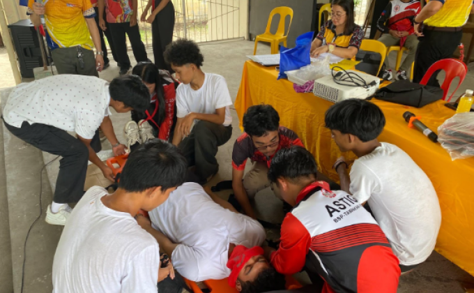 The Scouts of Tampakan NHS, guided by their Adult Leaders, simultaneously facilitated Project LIGTAS: Scouts Teaching Emergency Readiness for the Grade 10...