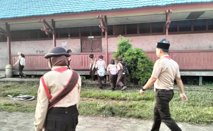 MELAWI – Sebanyak 269 pramuka penggalang antusias mengikuti latihan rutin yang difokuskan pada materi teknik kelangsungan hidup (survival) pada Sabtu sore (31