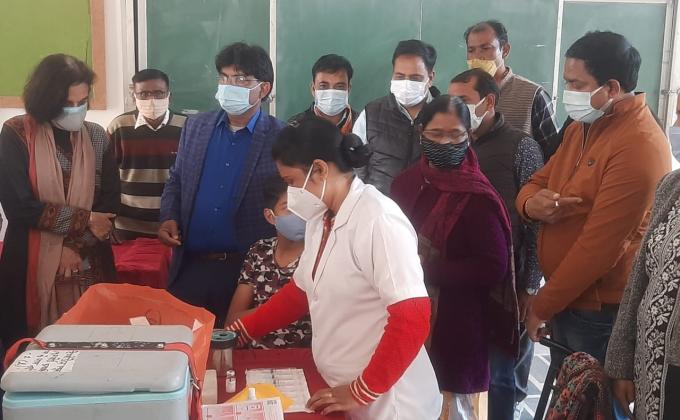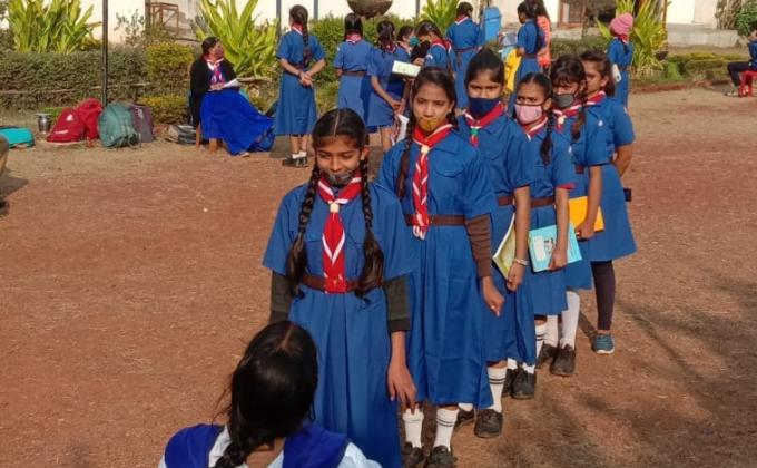 3 जनवरी: शिवपुरी के हैप्पीडेज विद्यालय में वेक्सिनेशन में सहयोग करते हुए स्काउट गाइड एवम स्काउटर गाइडर। 3 January: Scout guide and scouter guide while