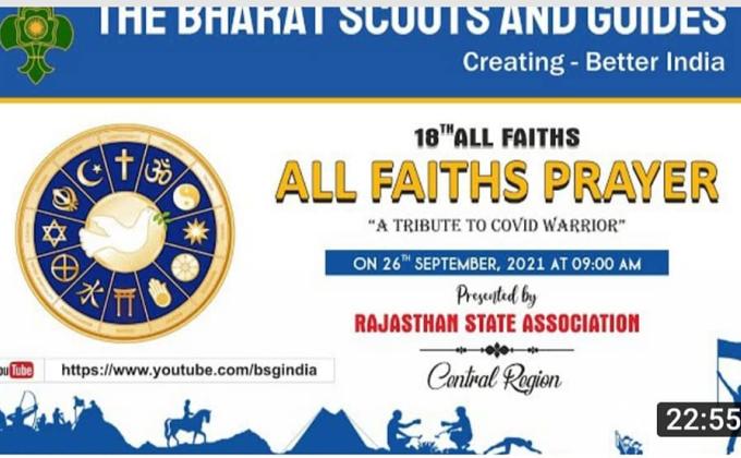 26 sept: The Bharat Scouts and Guides India organizing a series of All Faith Prayers "A Tribute to Covid Warrior" which will run up to 2 Oct. 2021. Today it