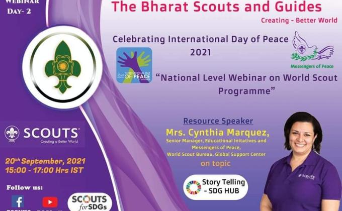 20 Sept: The Bharat Scouts and Guides Celebrating International Day of Peace 2021. National Level Webinar on World Programme. Today it was on STORY TELLING&