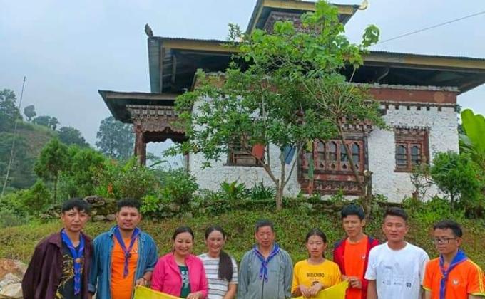 Few members of the Paro CBS members hike for 2 hours carrying rice and vegetables on their backs to Gentsakha lhakhang. Some of the members carried cement for...