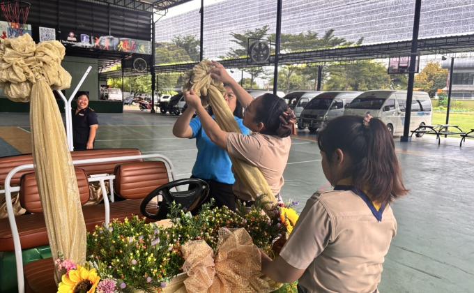 จิตอาสาทำหมวกจากธรรมชาติในการแข่งขันเต้นประกอบเพลง