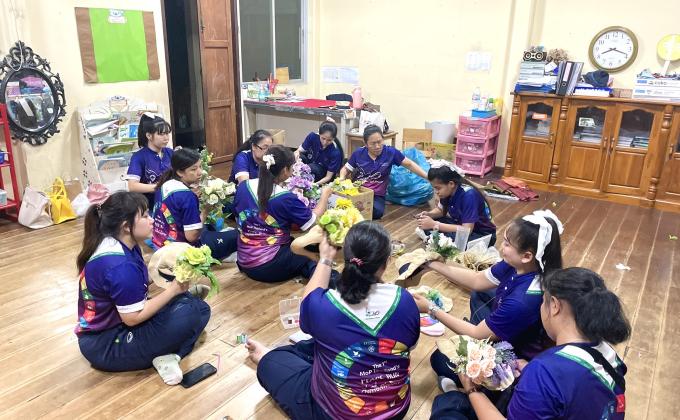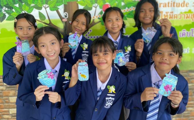 จิตอาสาดูแลนีกเรียนทำการ์ดมอบให้ผู้มีพระคุณ