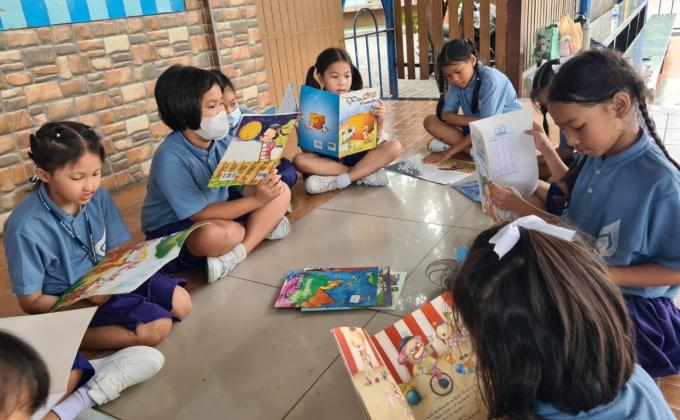 จิตอาสาดูแลนีกเรียนอ่านหนังสือเป็นราชกุศล