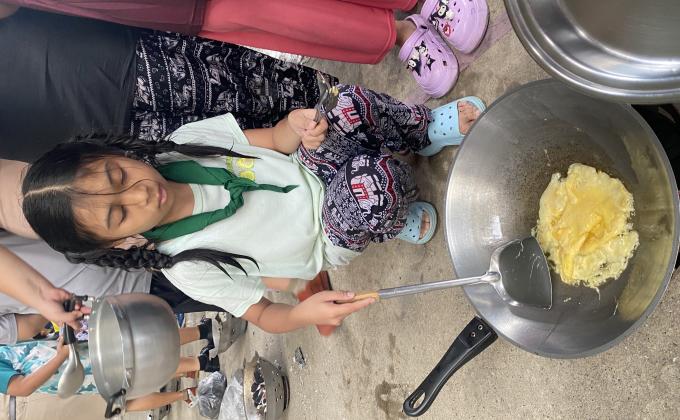 จิตอาสาดูแลนักเรียนเข้าฐานทำอาหารด้วยตัวเอง