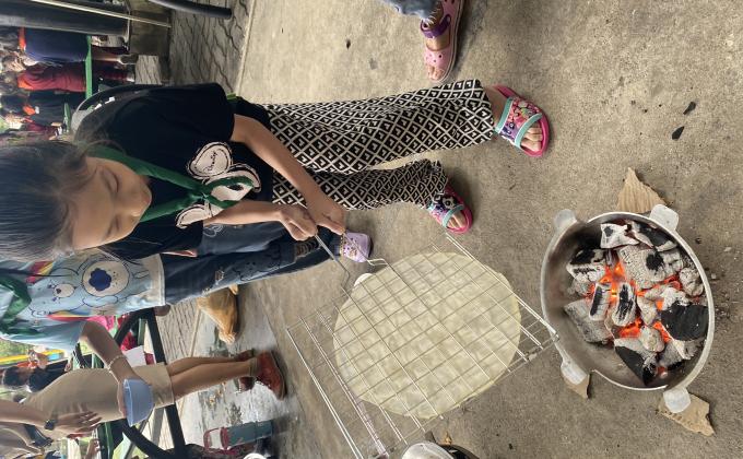 จิตอาสาดูแลนักเรียนทำข้าวเกรียบว่าว