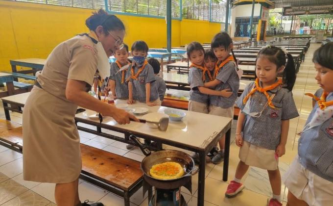 จิตอาสาสอนนักเรียนทำอาหาร ฝคกเอาตัวรอด