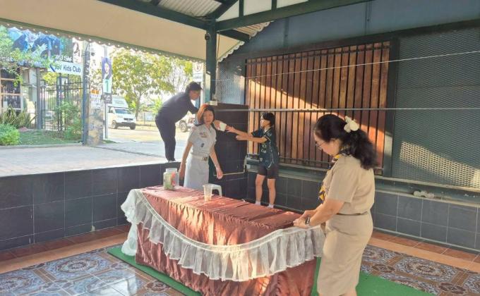 จิตอาสาช่วยจัดสถานที่ในการทำบุญใส่บาตร