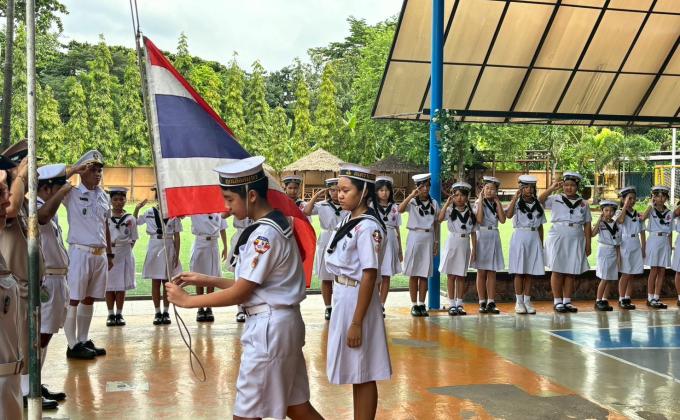 ลูกเสือเนตรนารีมีการเปิดกองก่อนเรียนทุกครั้ง