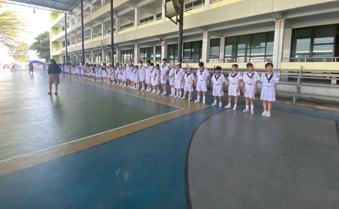 นักเรียนและคณะครูร่วมพิธีสถาปนาลูกเสือและมีการกล่าวคำปฏิญาณ
