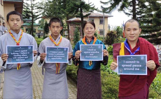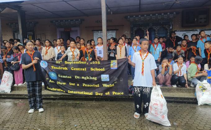 The scouts of Tendruk CS carried out the hike and a cleaning campaign on 21st September 2015 to mark the International Day if Peace . 150 scouts lead the hike